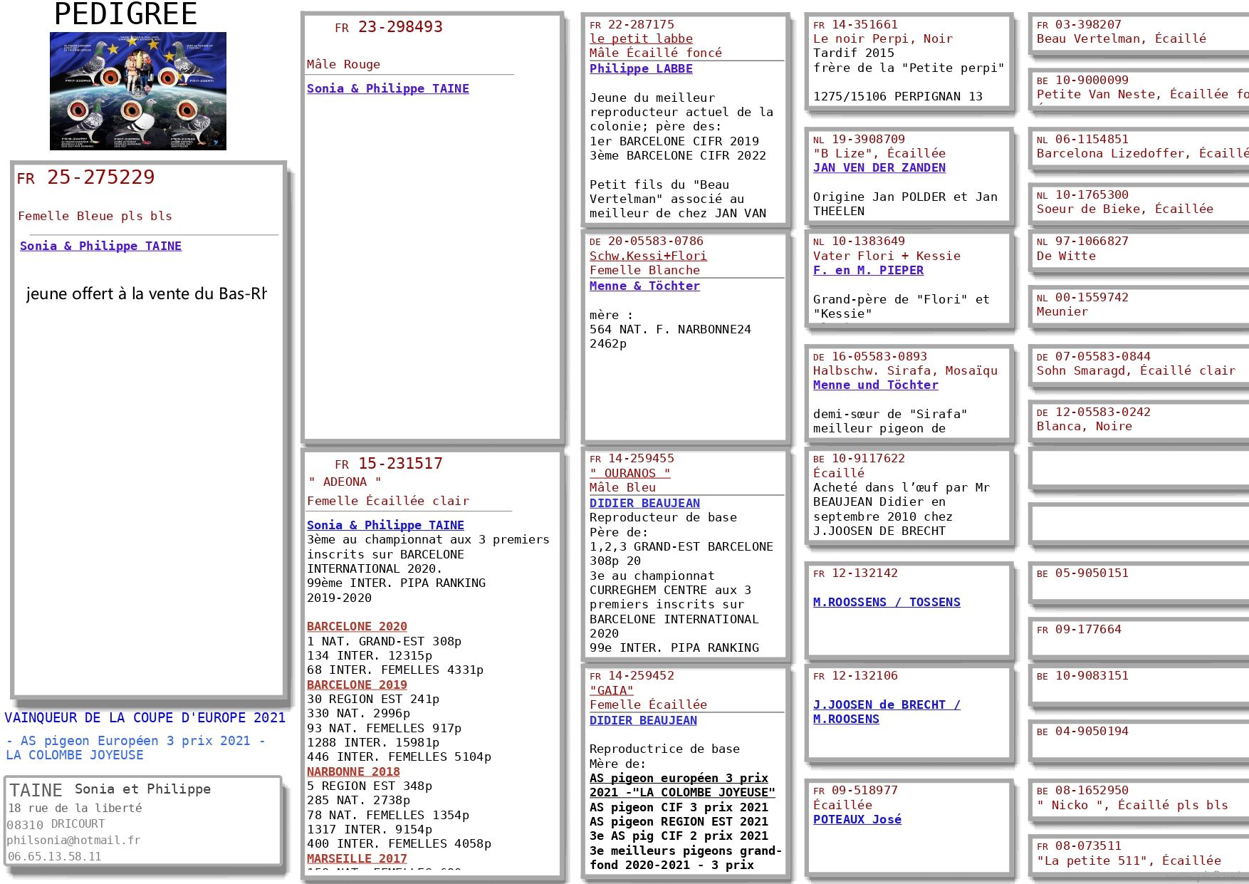 3 prix sur 4 engagés en femelles (26ème,49ème et 192ème sur 2239 pigeons)