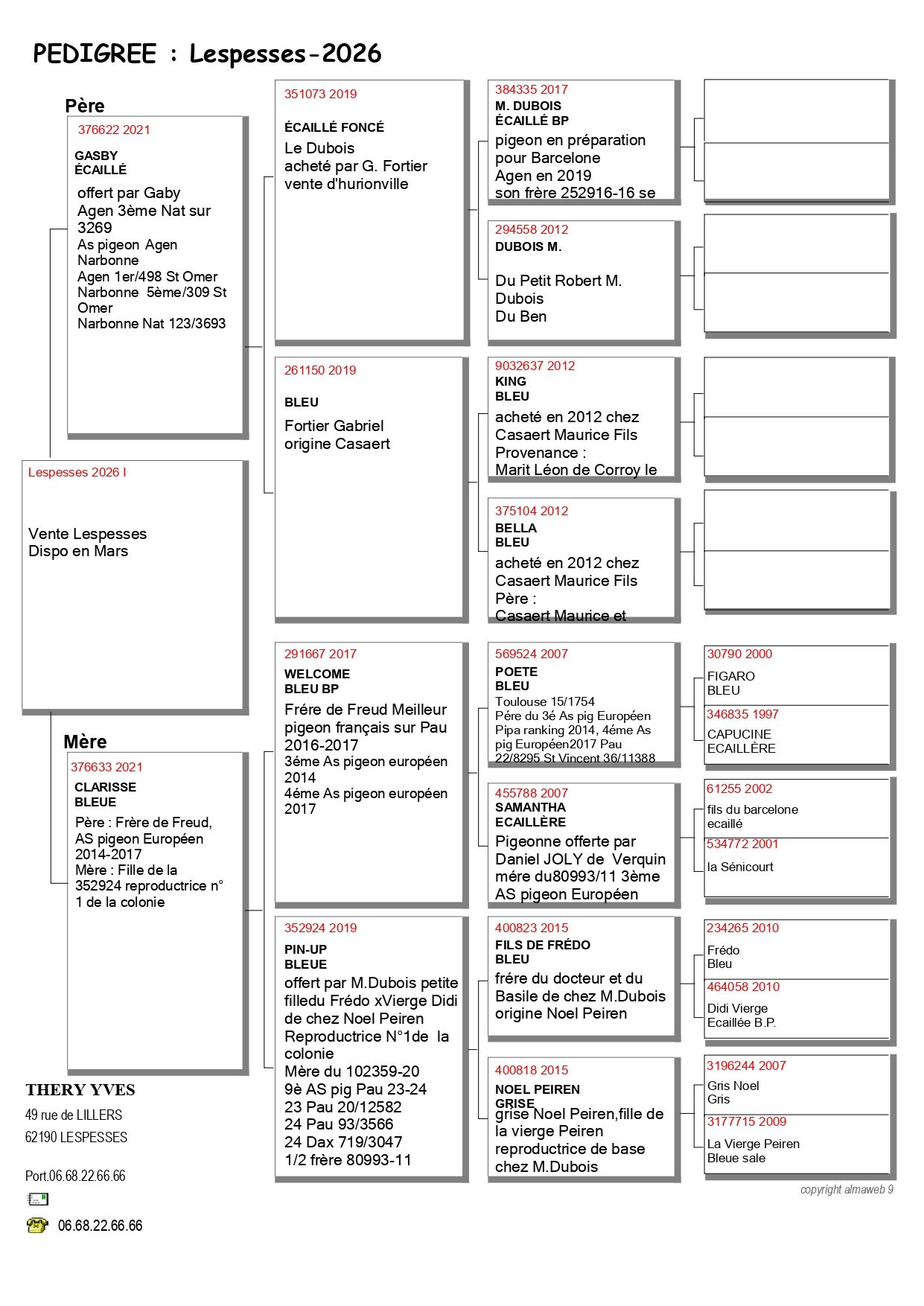 Offre 1 Jeune disponible en Mars Voir Pédigrée ci dessous