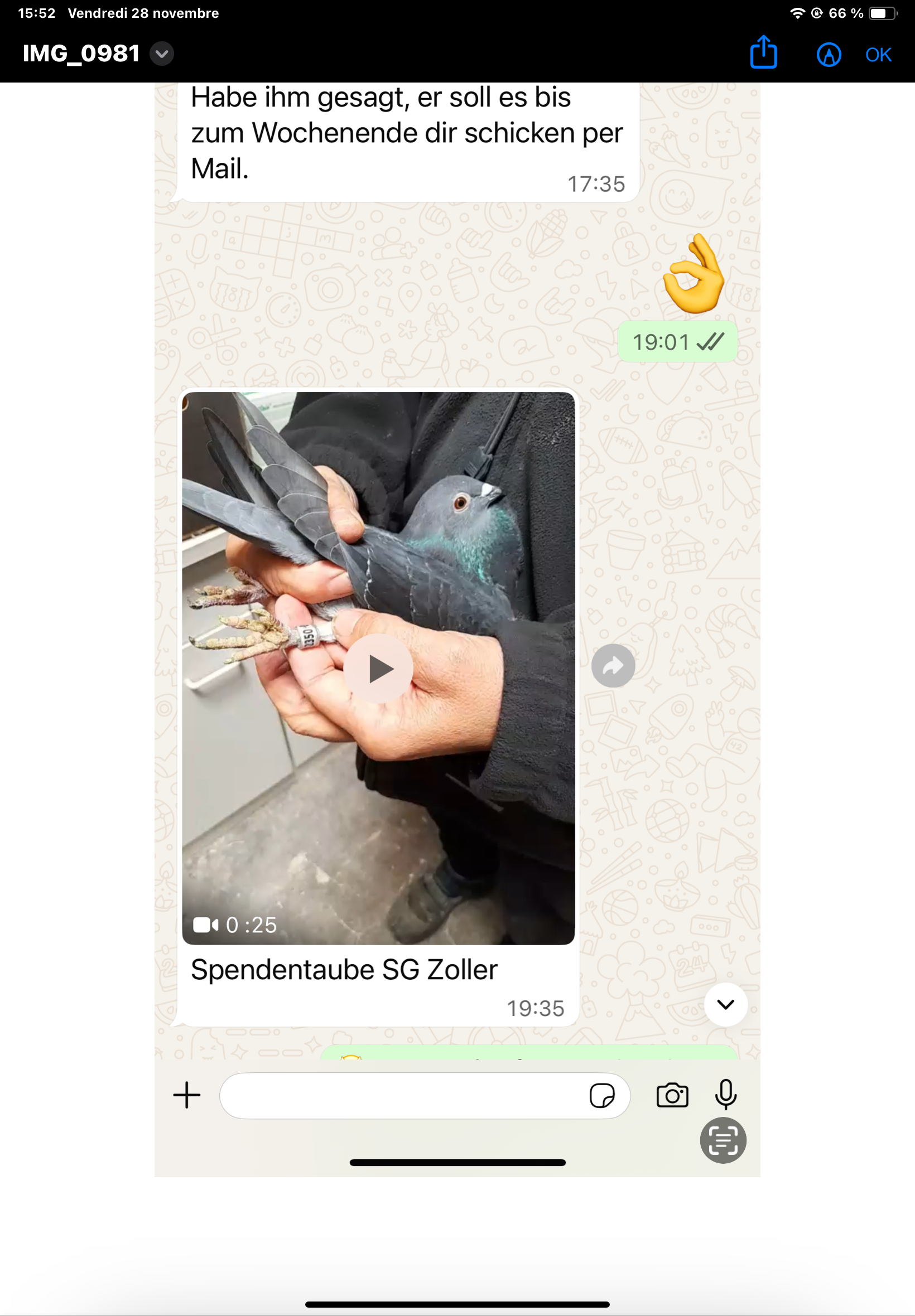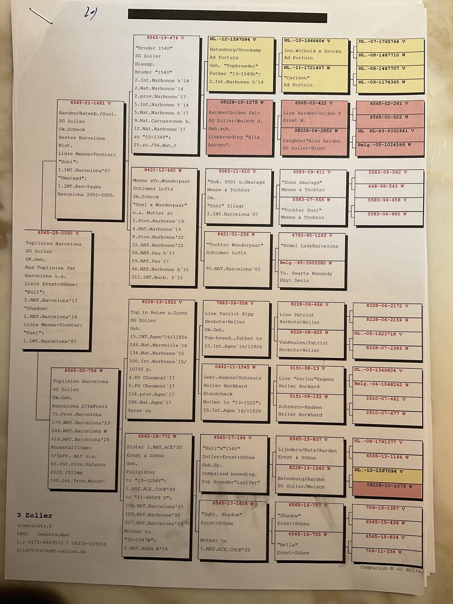 Torsten nous dit que ce mâle devrait donner de bons pigeons pour Barcelone, on ne peut que le croire à la vue de ses ascendants.