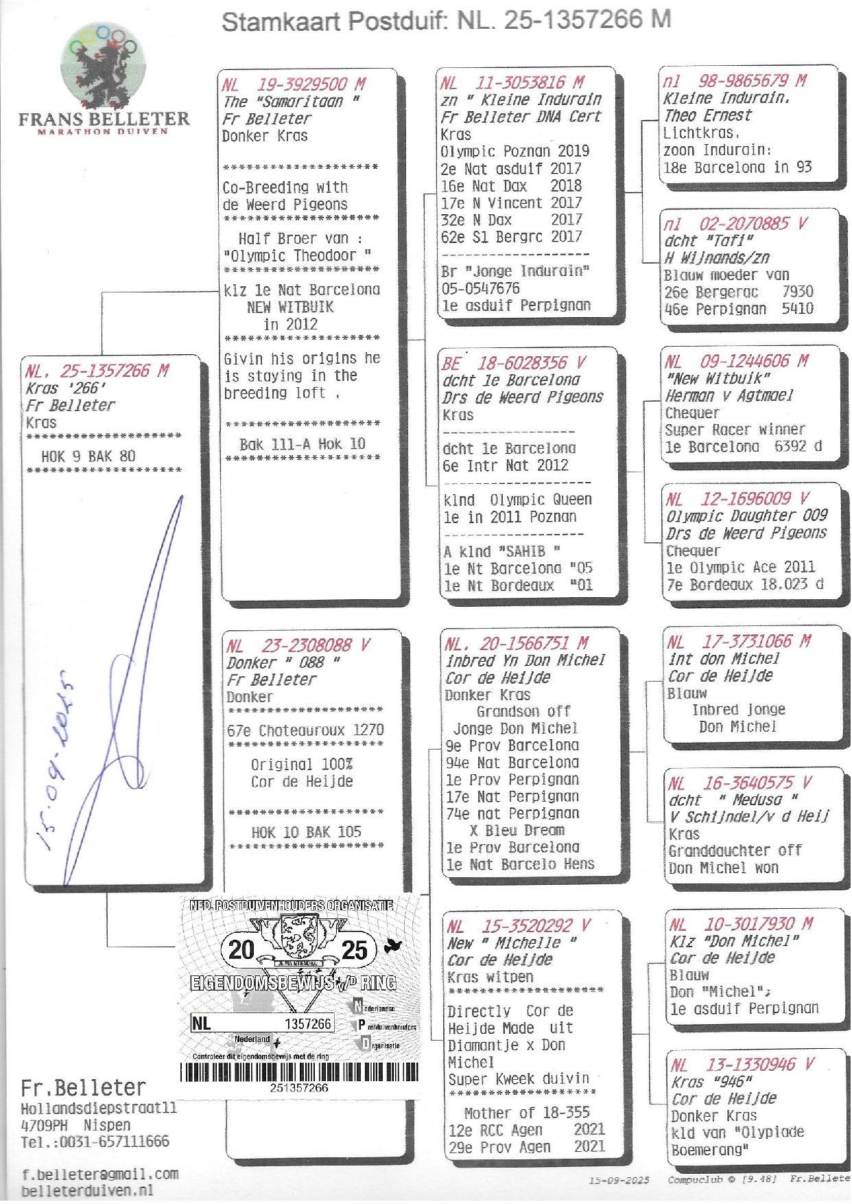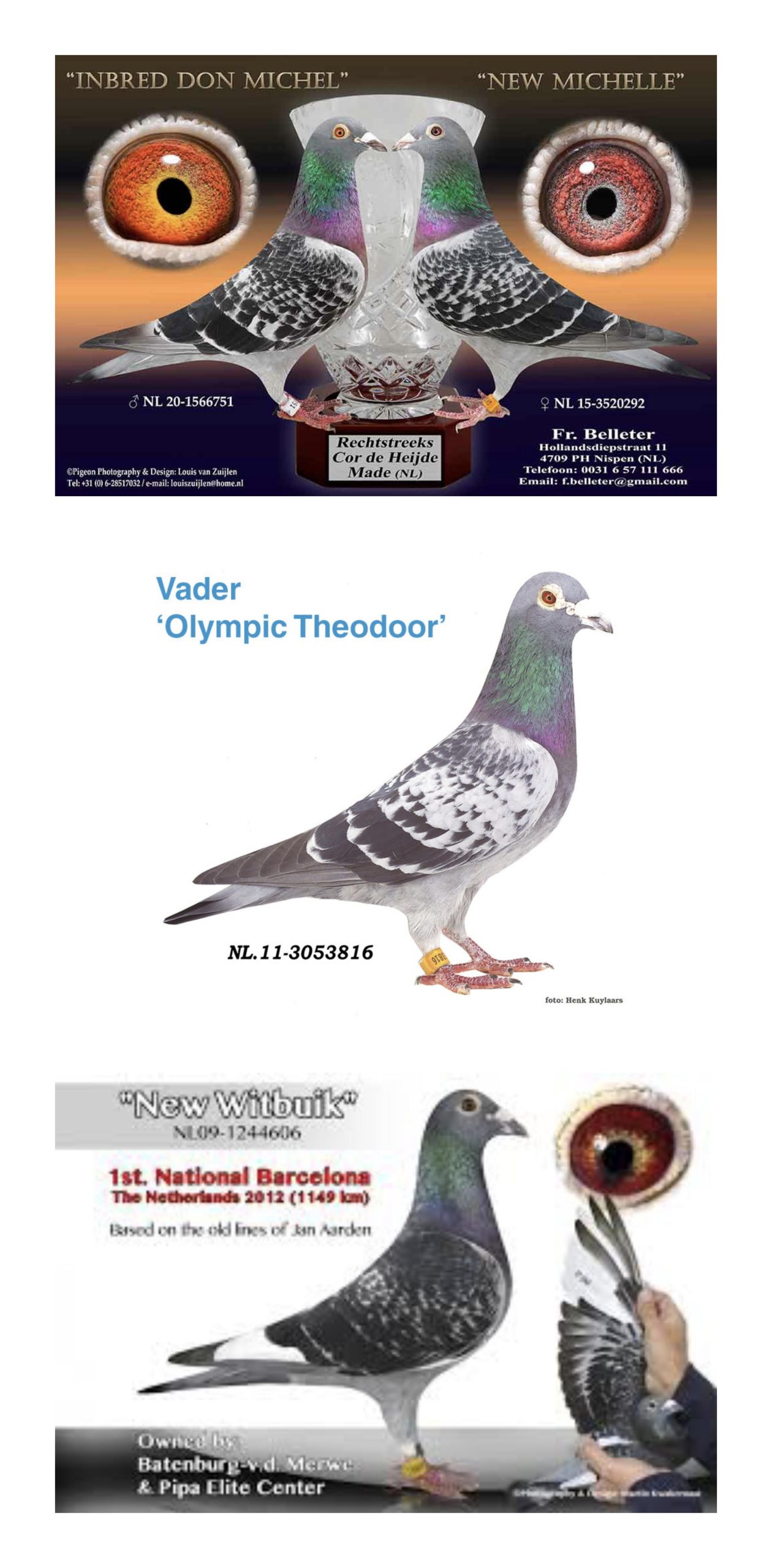 Il est à la fois demi-frère du crack OLYMPIC THEODOOR de Frans (2ème AS PIGEON FOND 2017),mais également petit fils du NEW WITBUIK (1erNATIONAL BARCELONE 2012).