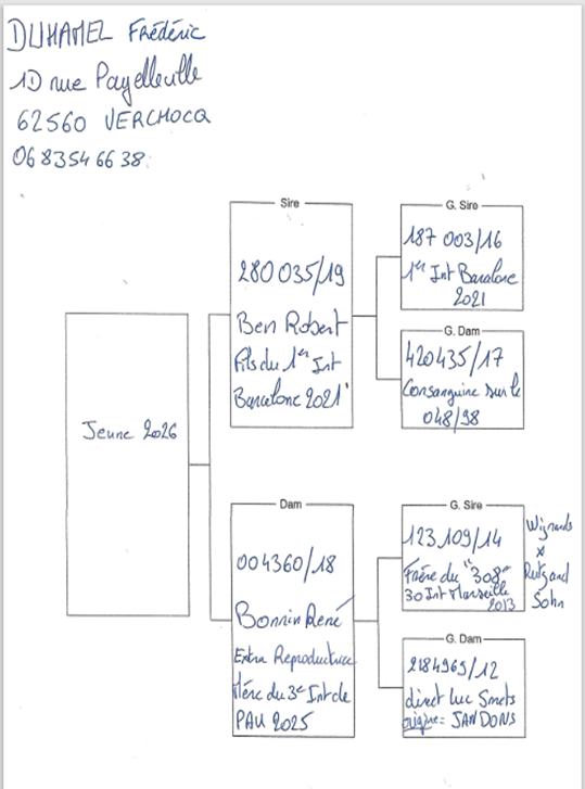 Bon pour un jeune au printemps 2026 (voir pédigrée)