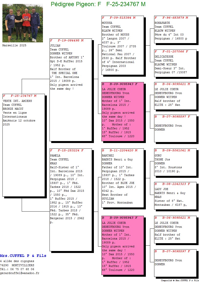 Barcelone  ALC Normandie 1°-3°-39°/ 330 Pigeons- NAT 32°-89°-840°/3660  Pigeons- INT  424°-804°/15602 Pigeons.