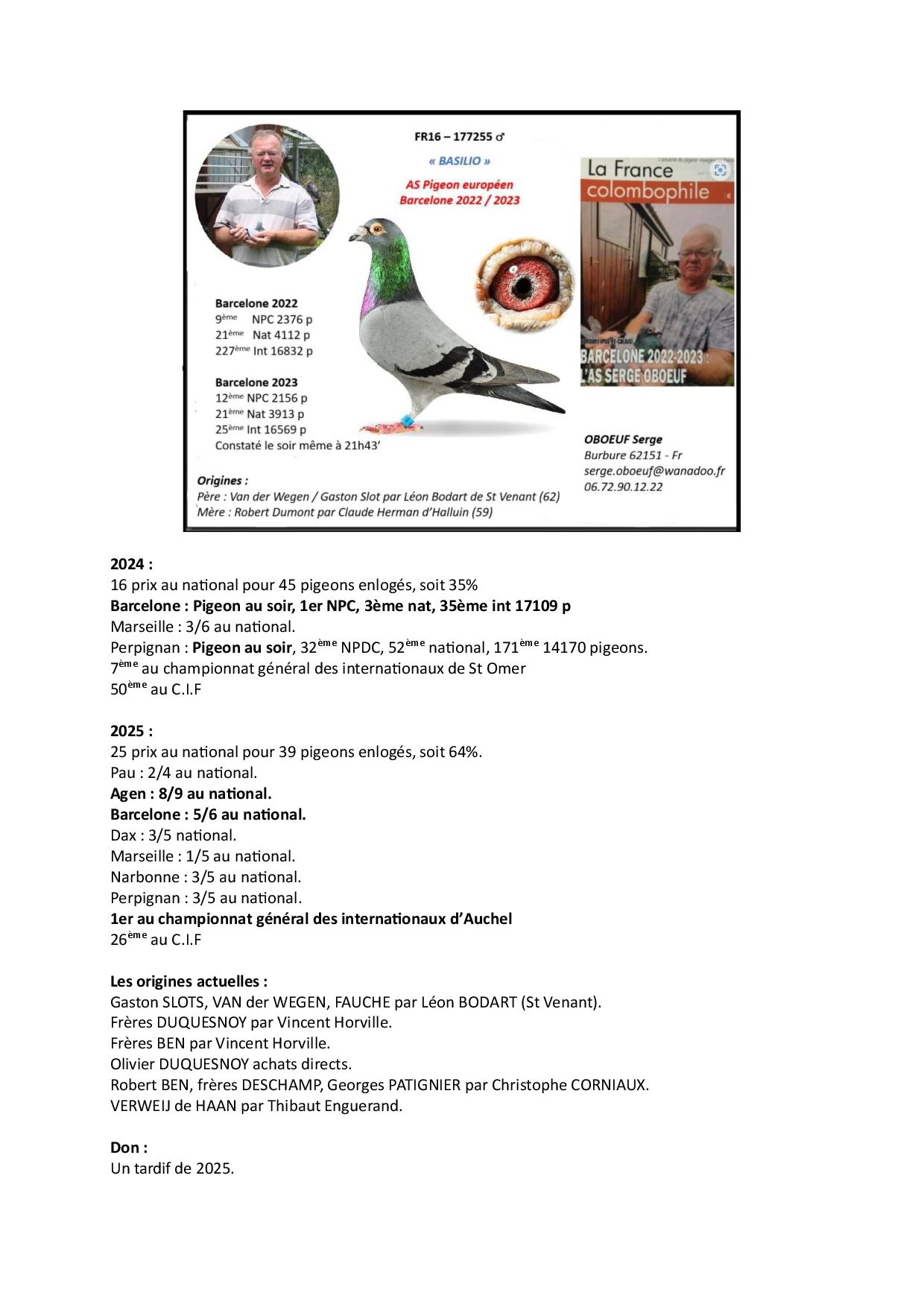 Offre 1 tardif 2025 (prendre contact avec amateur)
