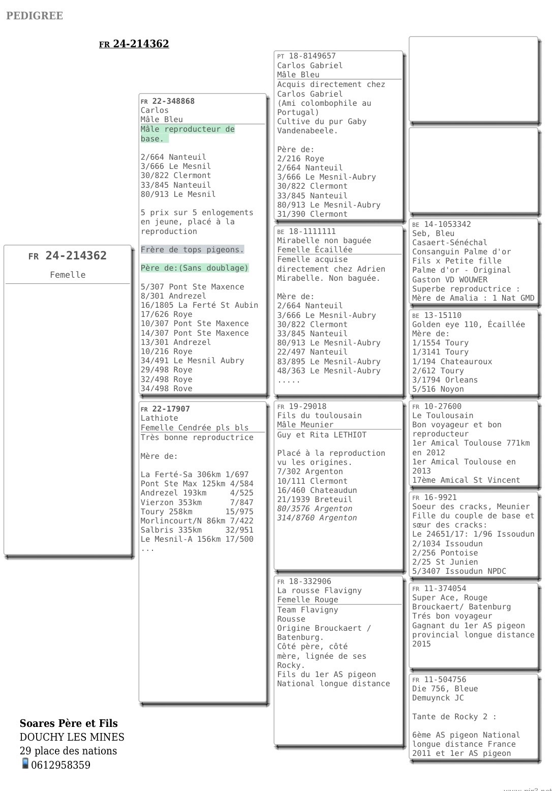 La Team SOARES père et fils nous offre un très joli cadeau avec ce pigeon issu des Tops Reproducteurs de la maison de ces Champions.