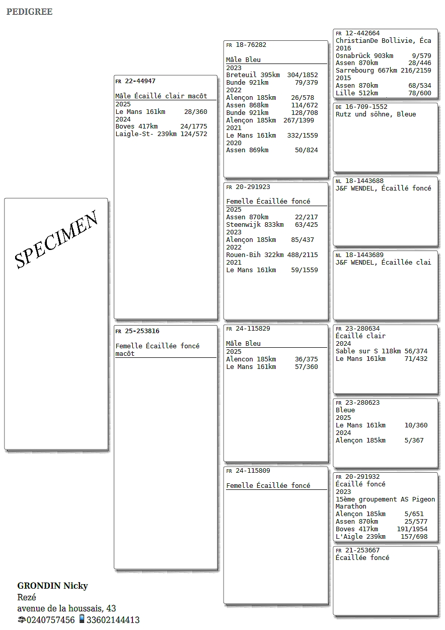 Nicky est un joueur confirmé des grandes distances, avec des souches de grand fond. Il nous propose un jeune de ses reproducteurs.