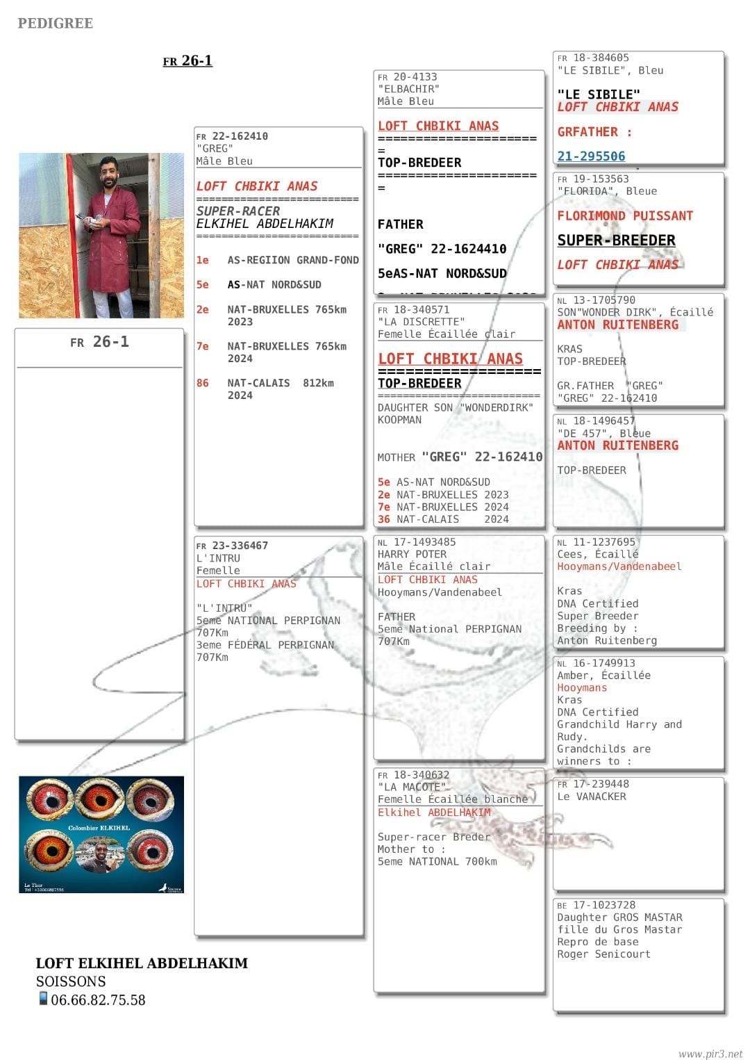 Hakim nous un jeune sur son crack ( Greg ) pédigrée ci-dessous .