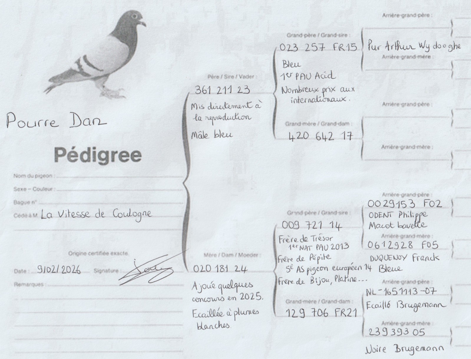Pédigrée du DON offert :
