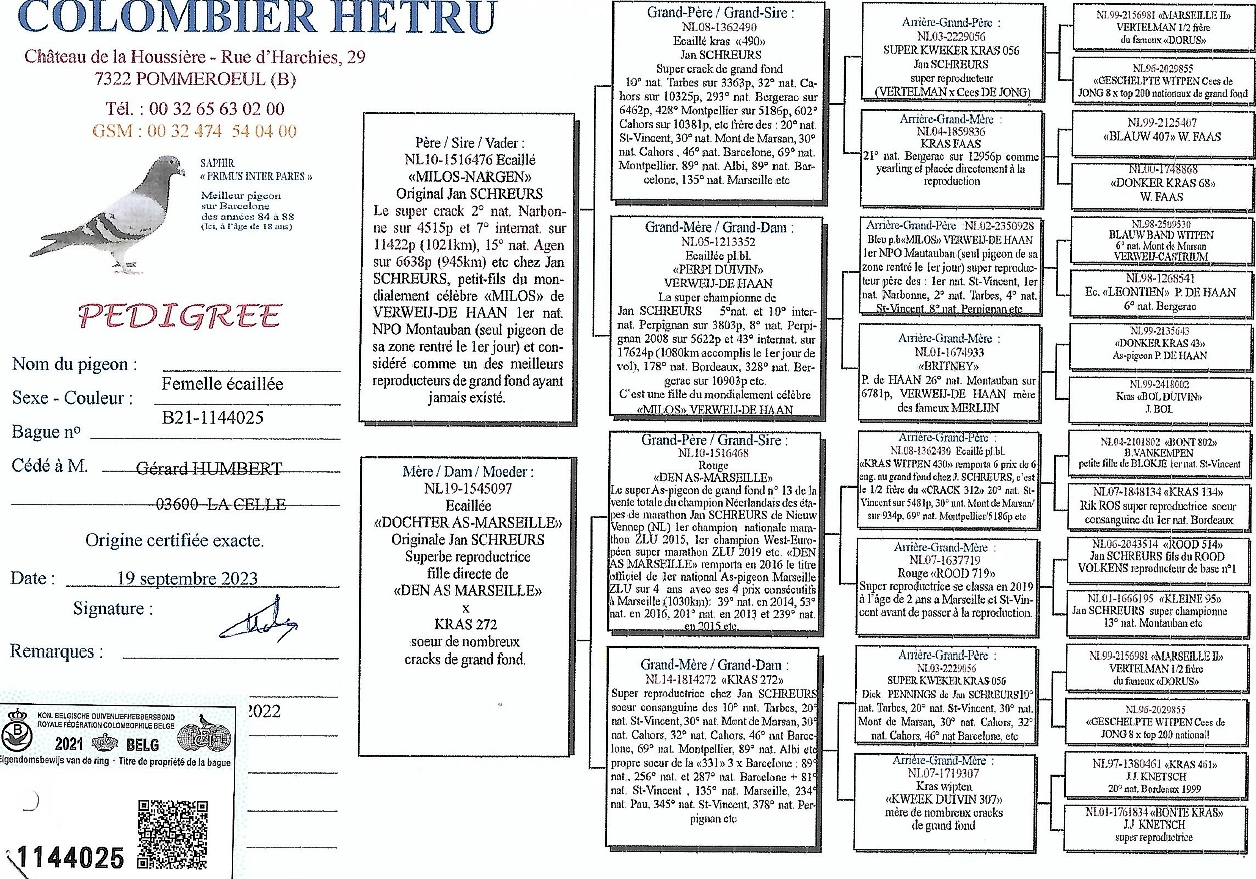 Pedigrees des parents ci-dessous