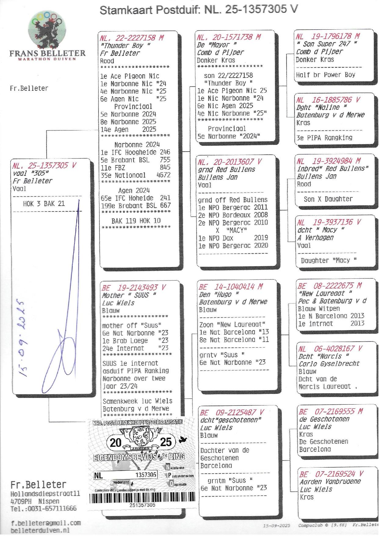 Au niveau du pédigrée, que des grands noms de la colombophilie moderne : la NALINE