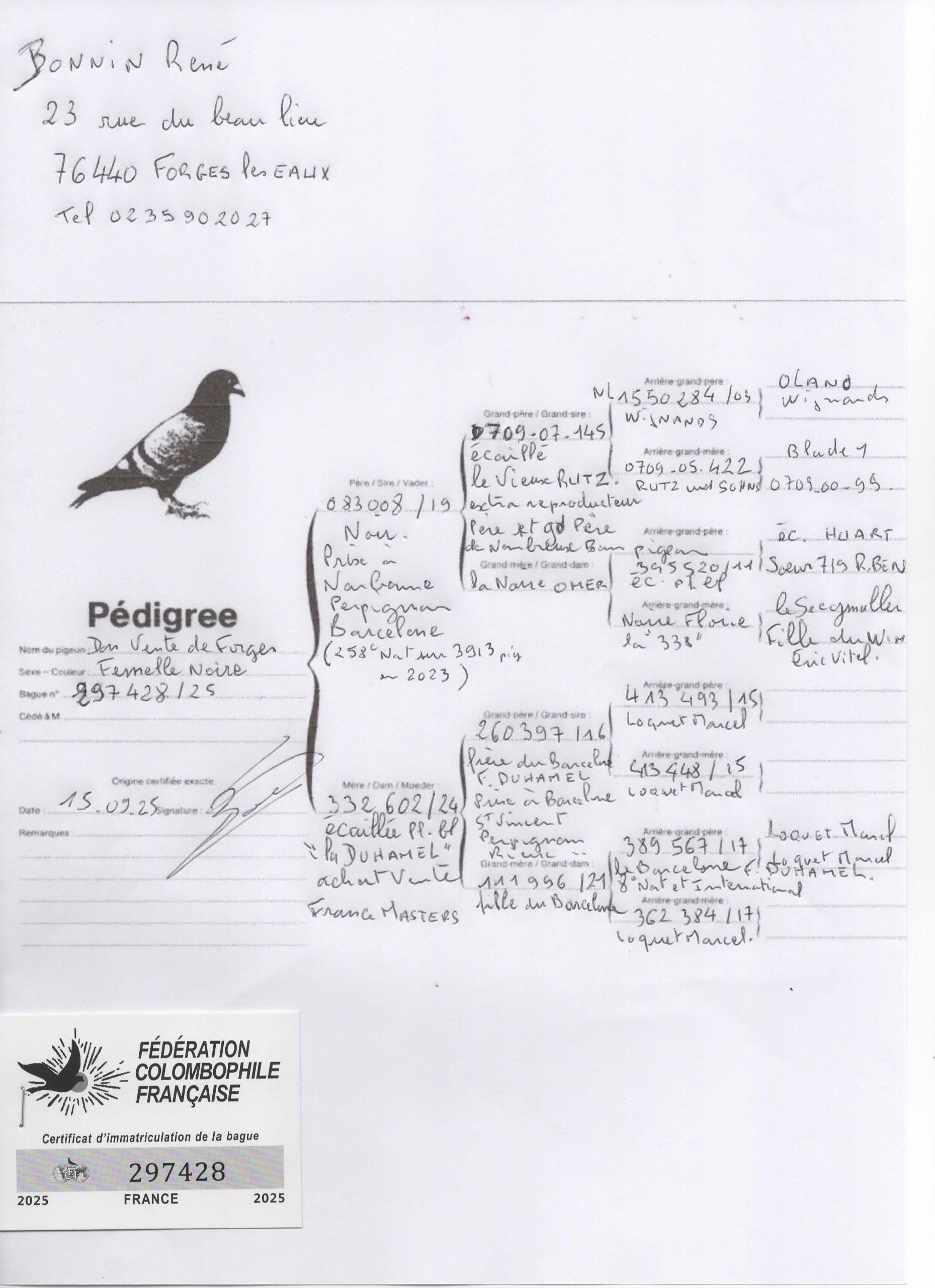 la mère de cette femelle étant une consanguine du terrible Barcelone de Frédéric Duhamel 8è nat et int Barcelone 2021 constaté le soir même …