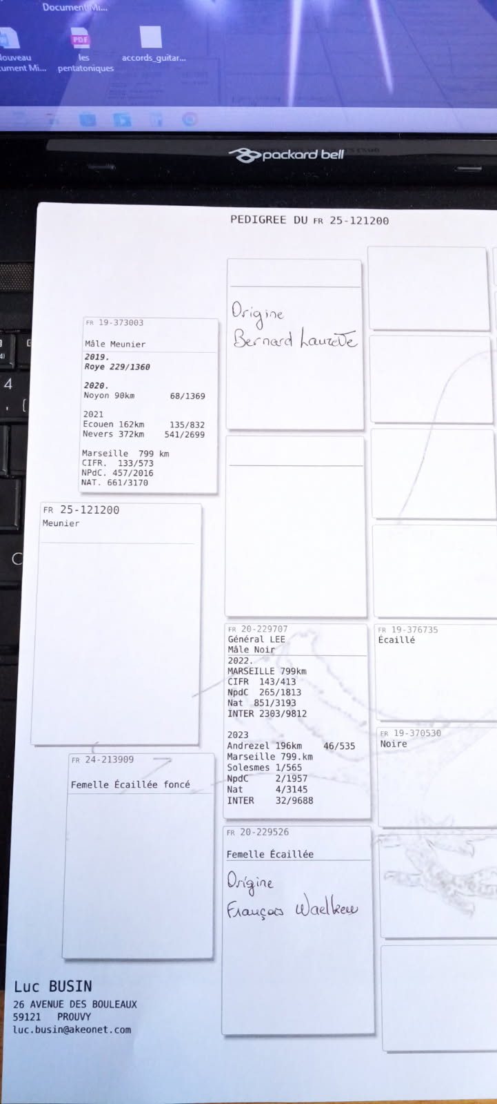 On retrouve déjà des origines connues chez lui provenant d’amateurs qui se distinguent sur les longues distances.