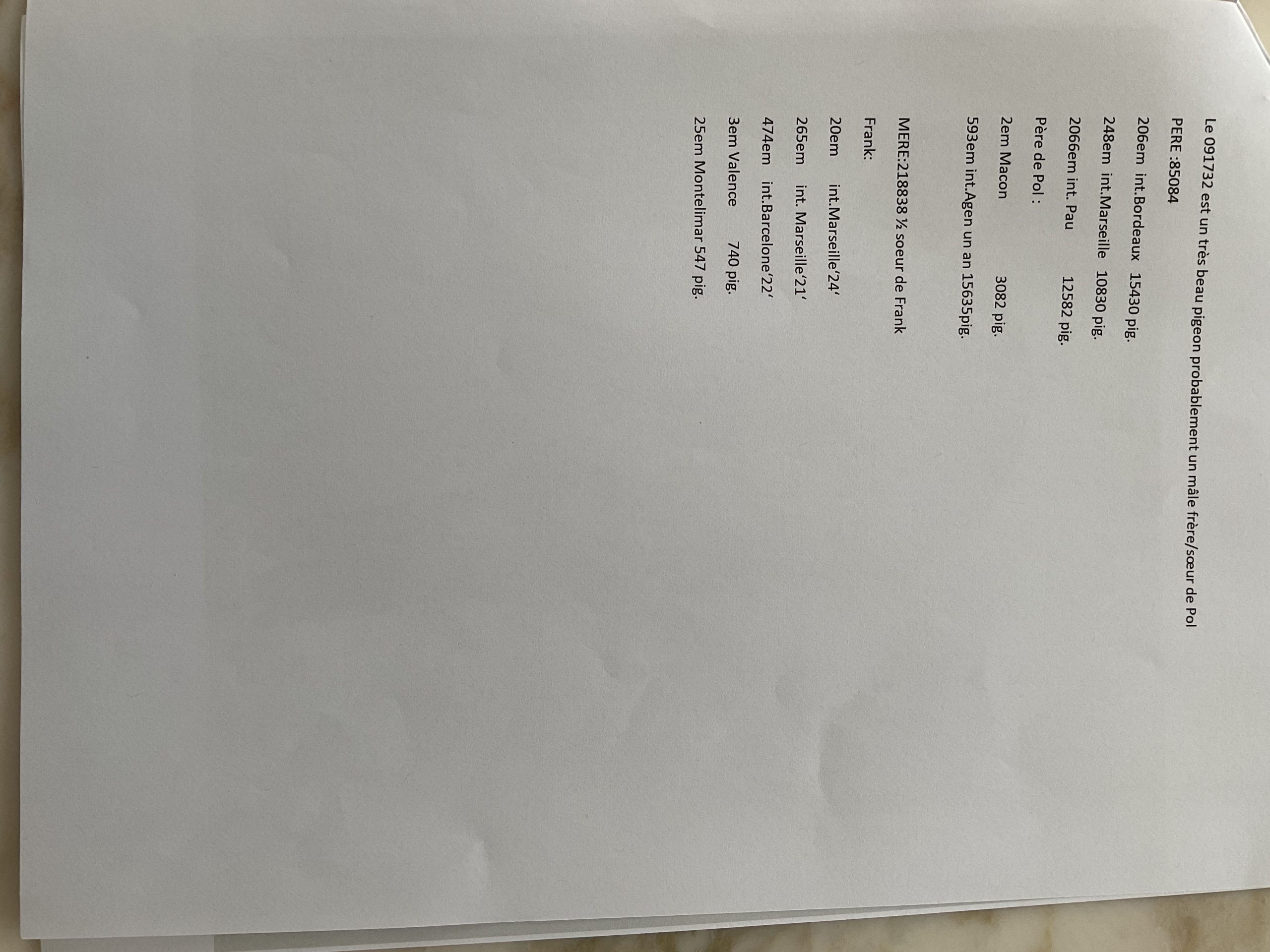 Pour cette vente Humberto nous offre un frère de Pol qui à un an se classe 2 eme sur 3082 pigeons à Macon concours très dur et 593 eme international sur Agen.