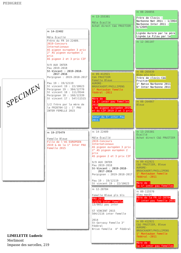 Ludovic offre un Jeune CONSANGUIN sur ses Champions La 1ere INTER PAU Femelle 2015 et de L’AS CIF et Européen 2019 le 22489-2014 tous les deux issus d’AURORE (G&C FRUITIER, origine BROUCKAERT / PHILIPPEN).