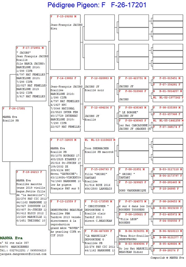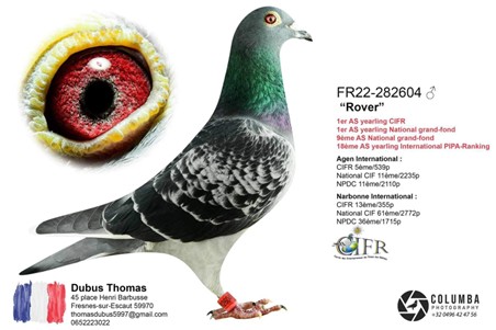 Offre 1 Jeune voir pedigree ci-dessous, un superbe cadeaux de Jacques un frère ou sœur de « ROVER » As pigeon Yearling CIFR 2023 que j’ai offert au jeune Thomas DUBUS en 2022.