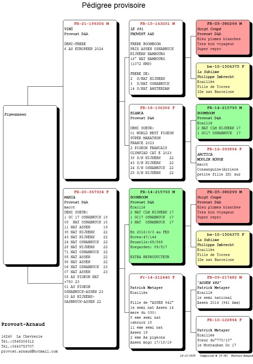 OFFRE UN PIGEONNEAU     Voir Pédigrée ci dessous