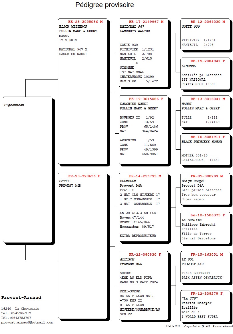 2EME au champion national nord sud +750 kms 2EME au champion criterium France + 750 kms 5 AS PIGEON CRITERIUM France + 750 KMS