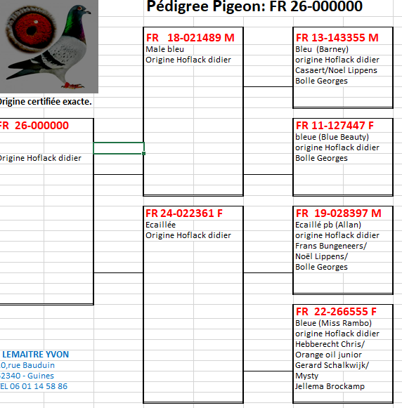 offre un pigeonneau 2026 (voir pédigrée joint) Prendre contact