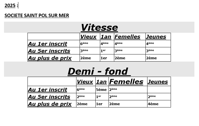 3ème au championnat yearlings demi-fond aux 5 premiers inscrits