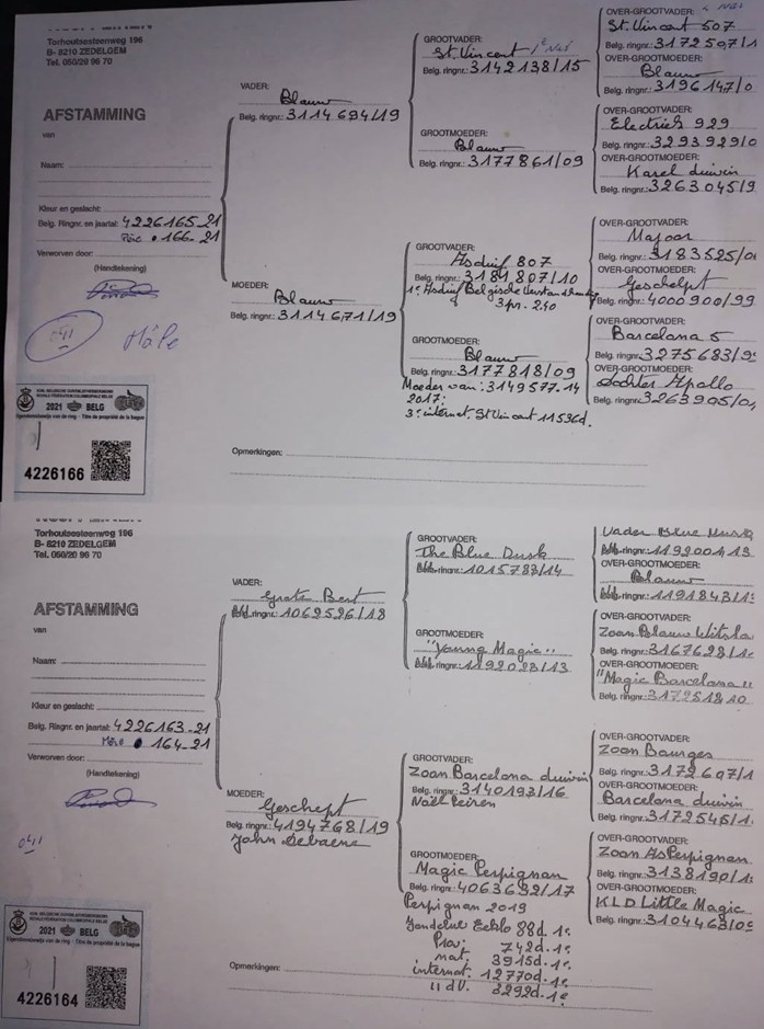Le Père : un 100% Noel PEIREN de ZEDELGHEM (voir pédigrée des Grands Parents)