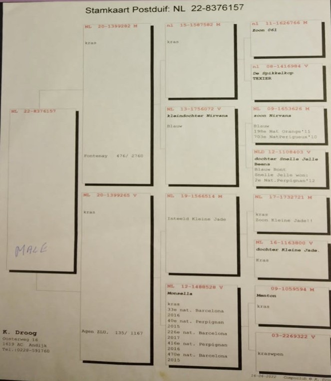 Pédigrée K DROOG (NL) ( Gd Père maternelle)