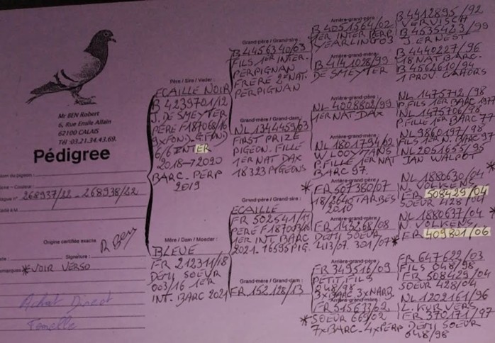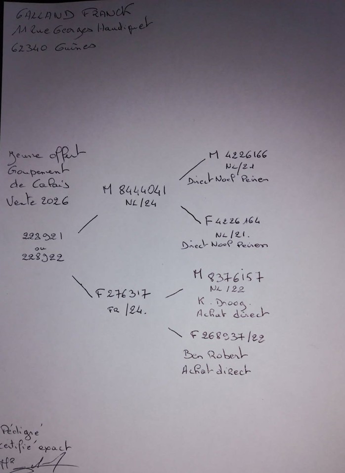 Pédigrée des Gd parents Paternel 100% PEIREN Noël