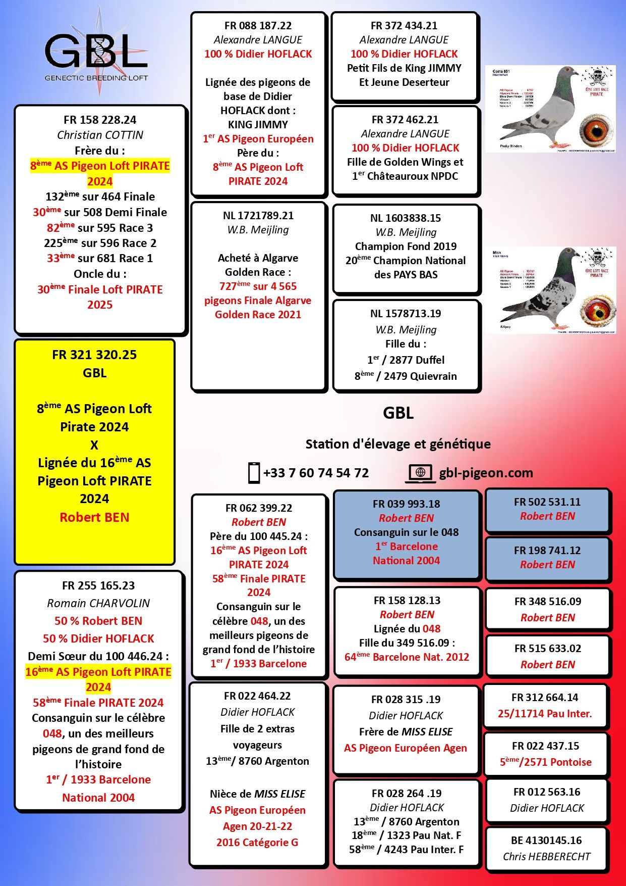 N° 5 : 25-321320 8ème As Pigeon Loft Pirate 2024 x Lignée du 16ème As Pigeon Loft Pirate 2024 Robert Ben