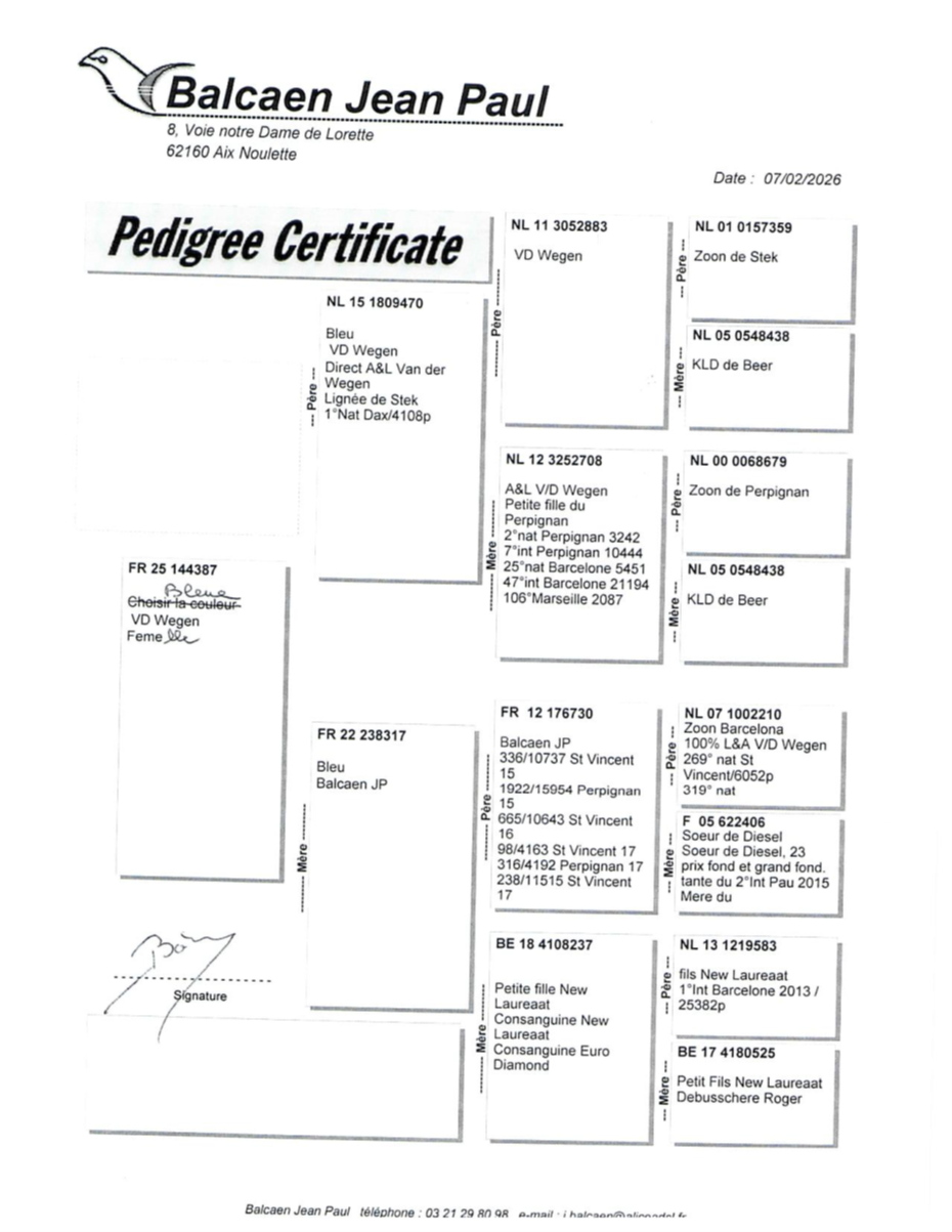2015 : 1 er national Pau et le 2e international de 9.062 pigeons.