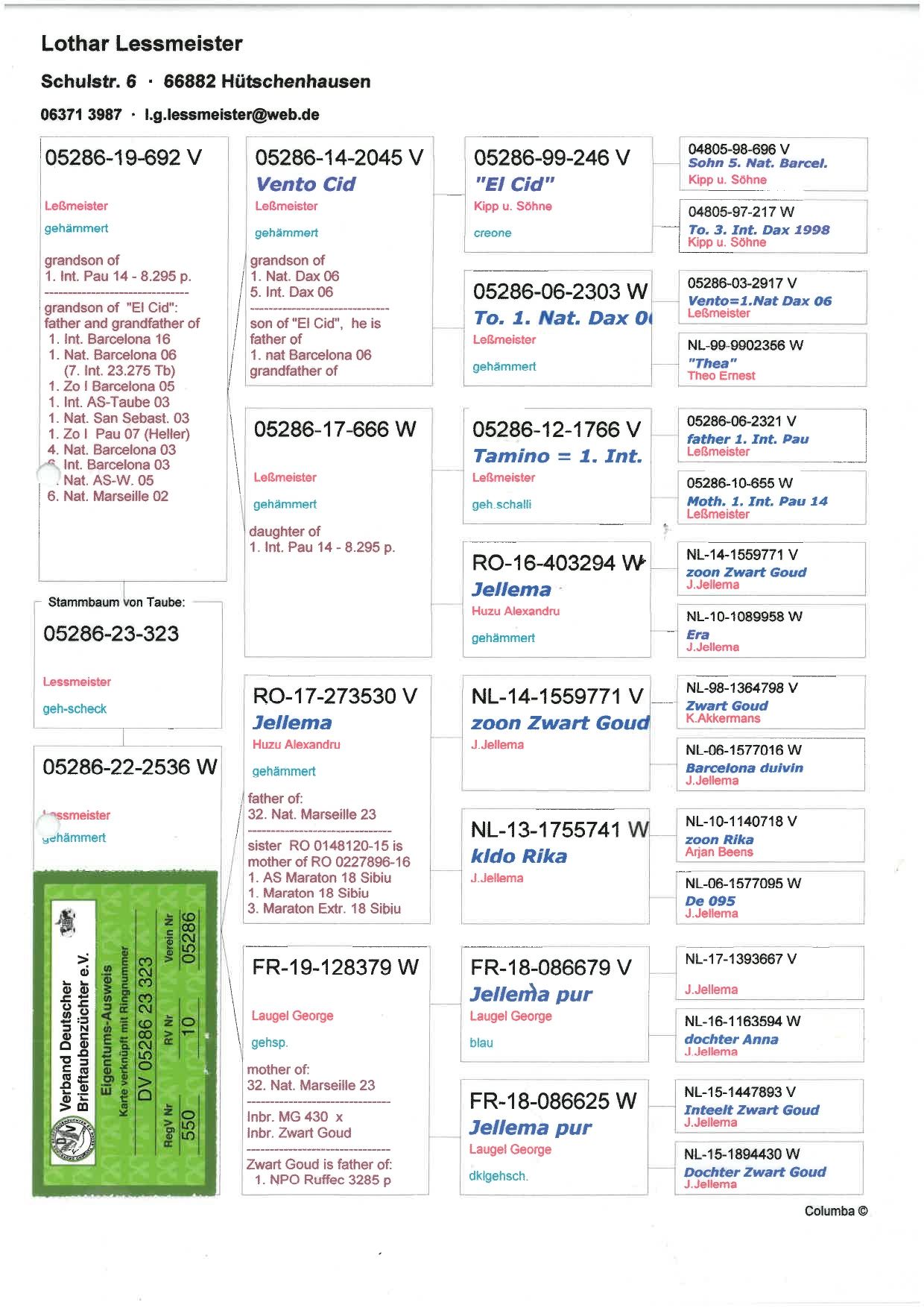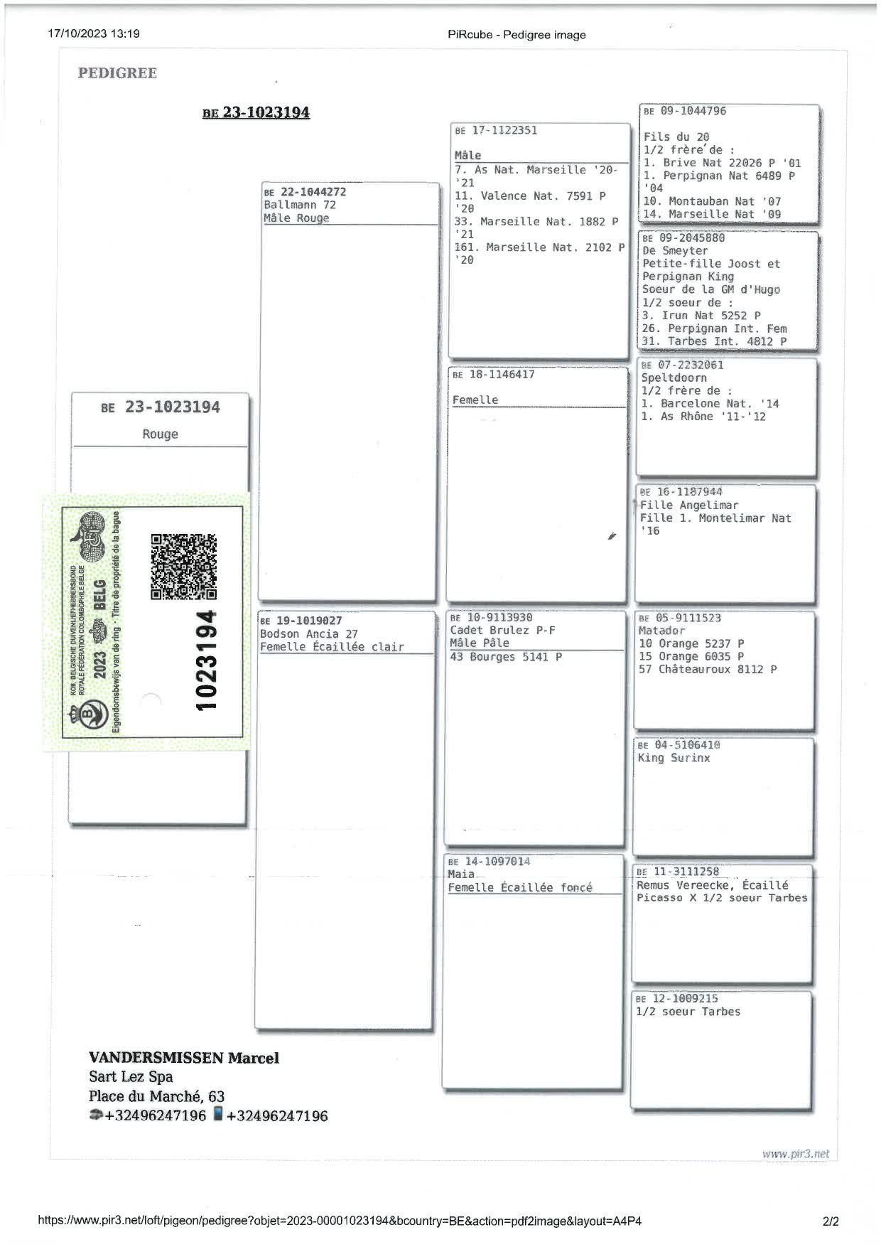Pour notre vente, le père sera un male provenant directement de chez Lhotar LEISSMESTER et la mère sera une femelle de chez Marcel VANDERMISSEN.