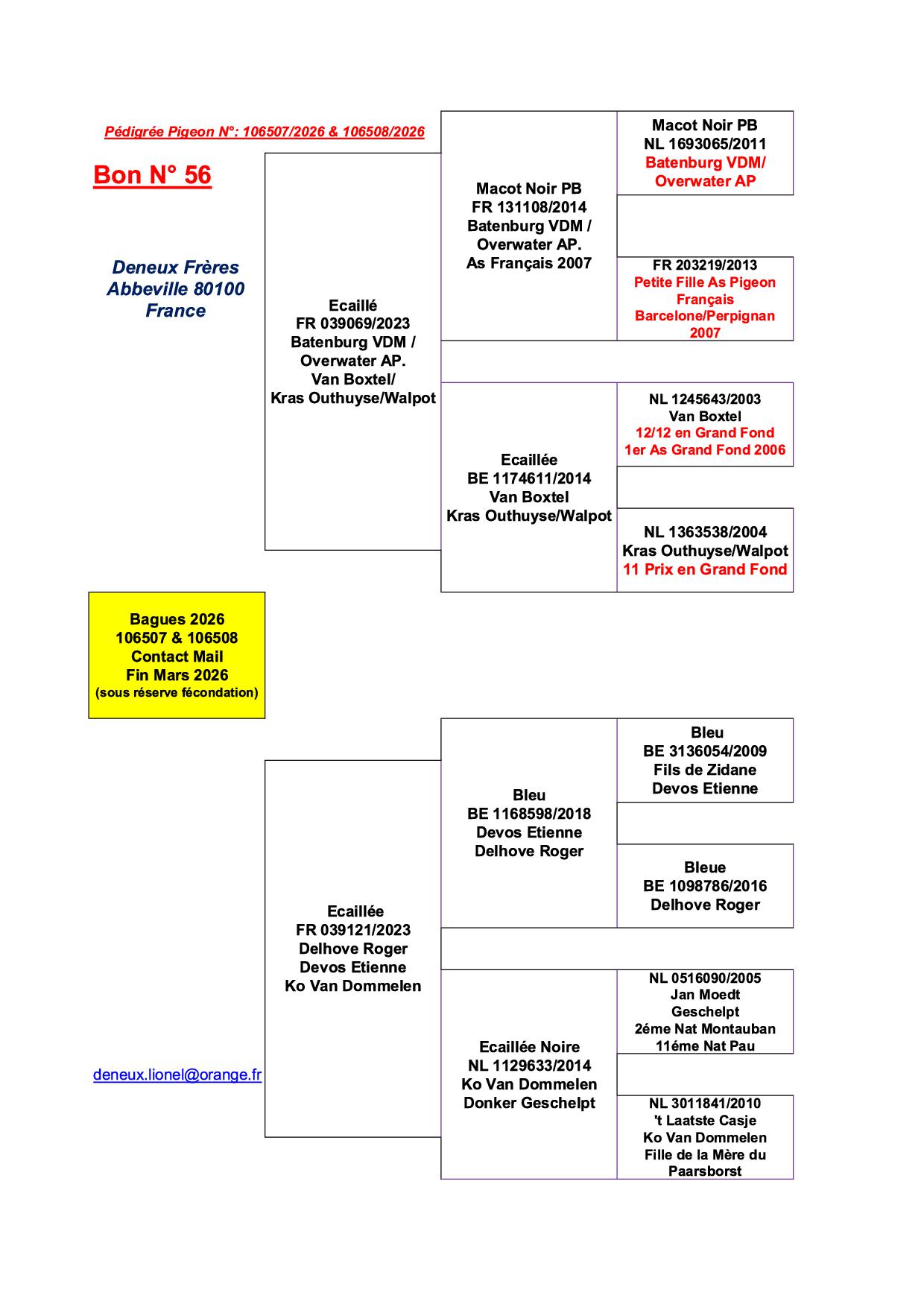 Offre 2 pigeonneaux (Contact fin Mars) Voir pédigrée joint (descendance Batenburg-Van Boxtel x Devos-Delhove/Ko Van Dommelen)
