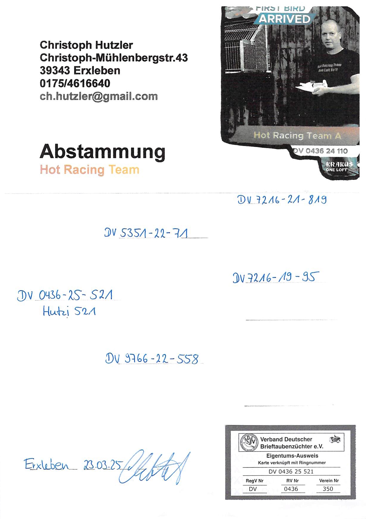 N° 57 : DV-0436-25-521 F – Hot Racing Pigeons DV0436-25-521