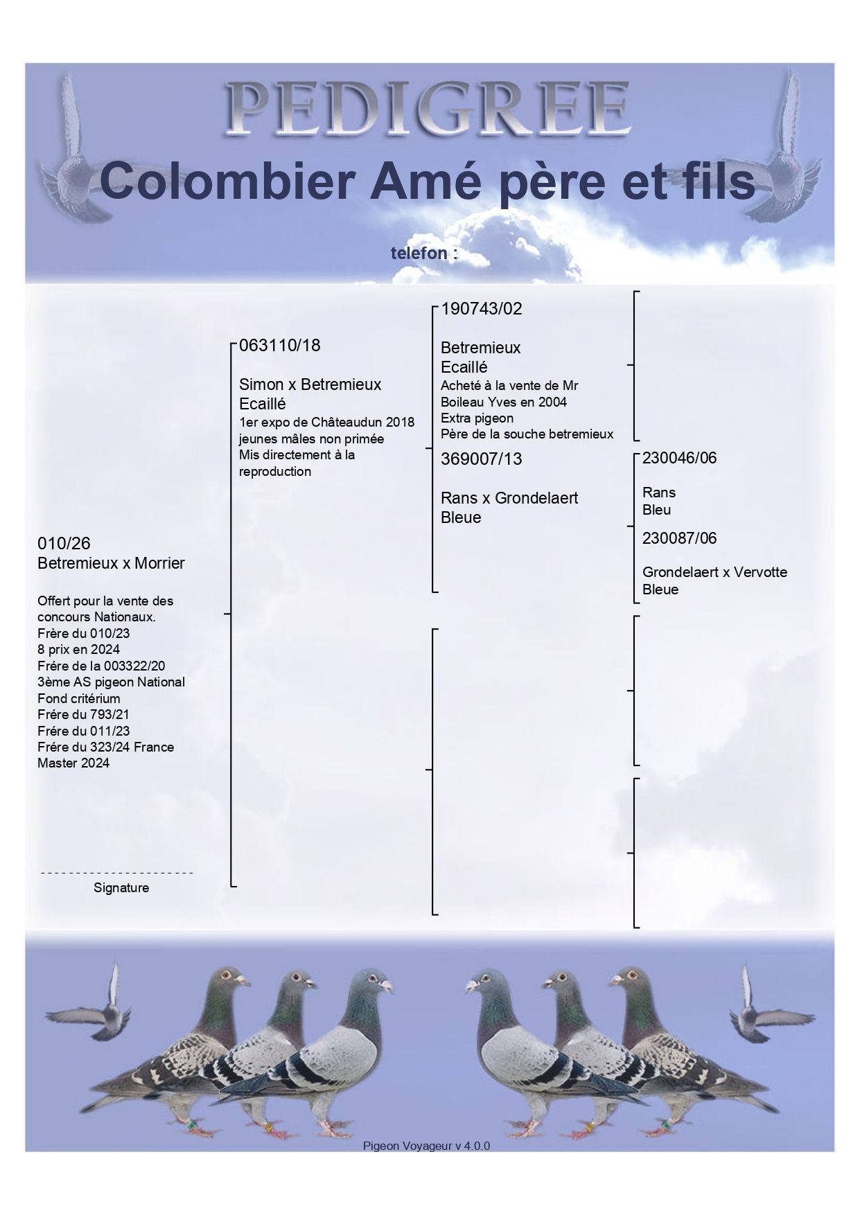 Origines du colombier : Betremieux, Simon, Thibaut-Boons, Harchies, Poussart, Dudouit.