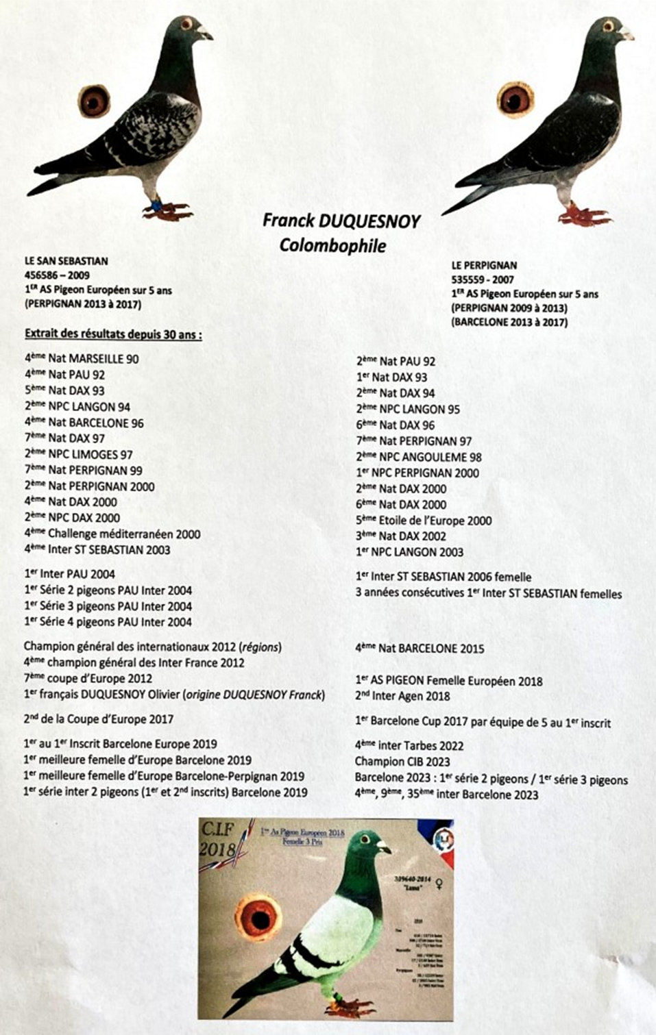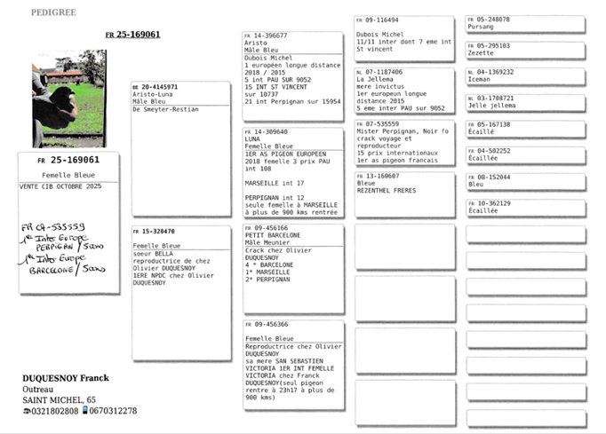 Vous pourrez admirer le pedigree avec les photos de AS pigeon dans les ascendants !!!!! Grandiose !!!!!