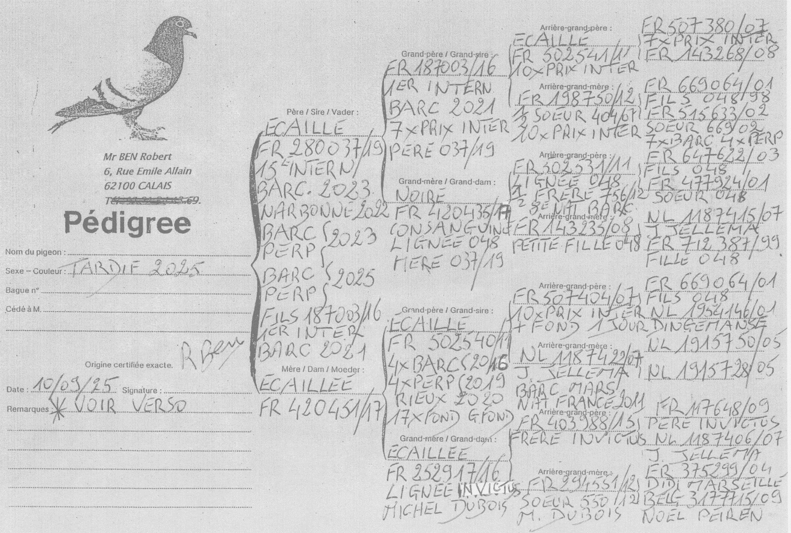 Robert va faire DON au CIB d’un Arrière-saison 2025 issu de ses meilleures lignées ! Vous y trouverez le 003 Vainqueur INTER BARCELONE 2021, le 048, les JELLEMA, Les DINGEMANSE et la lignée d’INVICTUS de Michel DUBOIS.
