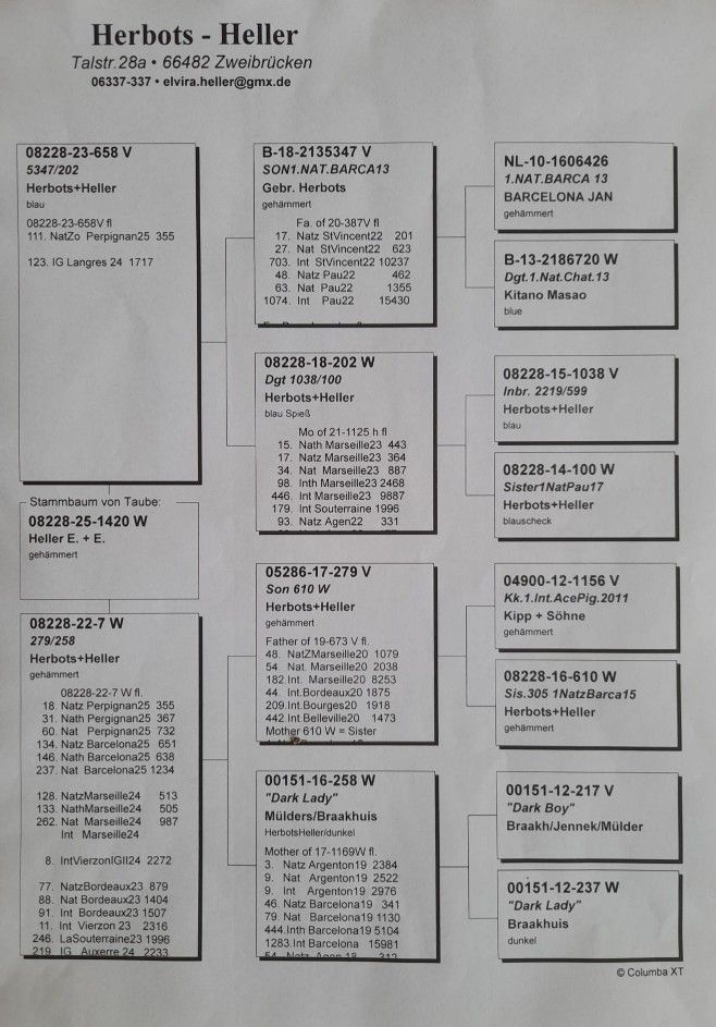 Outre leurs propres fondations issues des pigeons Seegmüller, les Heller se sont renforcés avec succès auprès de Karl-Heinz Koers, SG Kipp & Söhne, Lothar Lessmeister, Co van Dommelen et