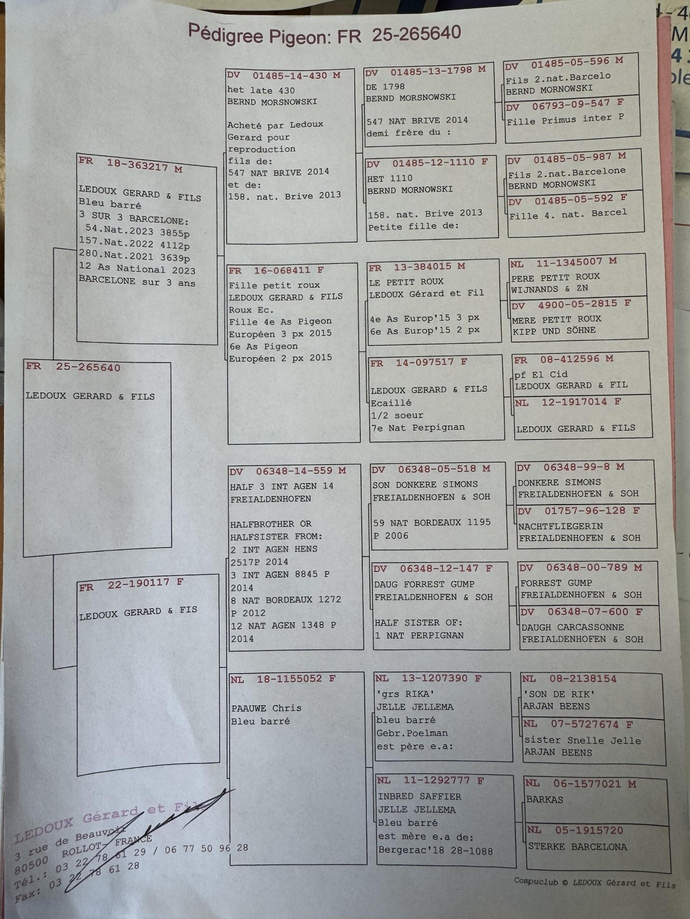 Offre un tardif 2025 voir le pédigrée ci-dessous .