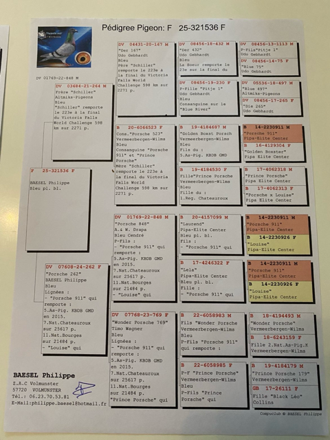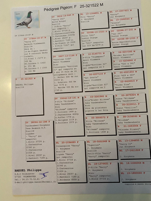 Offre un Pigeon des origines de Basel Philippe voir pédigrées ci dessous