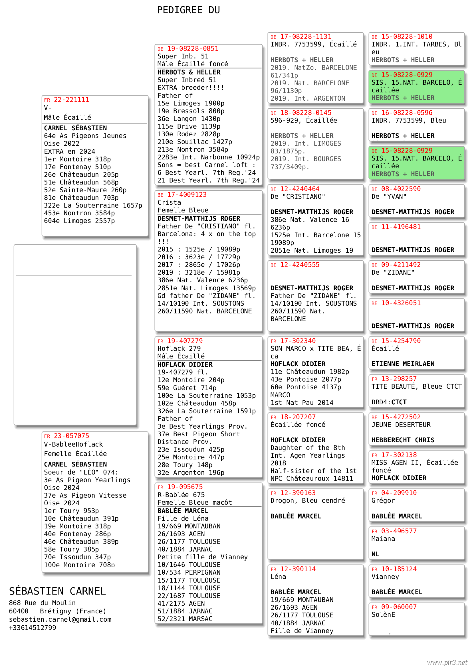 10e As Pigeon Femelles — FR 221120/22 (femelle)