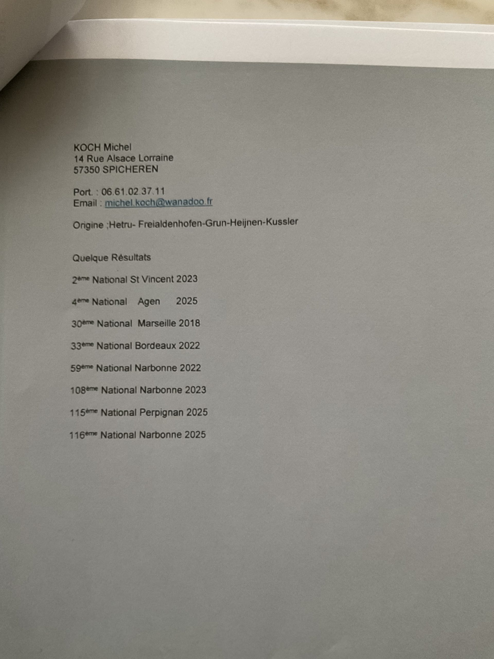 Monsieur Koch est un très bon amateur du Grand Est qui obtient des tops résultats sur les internationaux :2eme National ST VINCENT 2023,4eme National AGEN 2025,30 eme National MARSEILLE 2018….