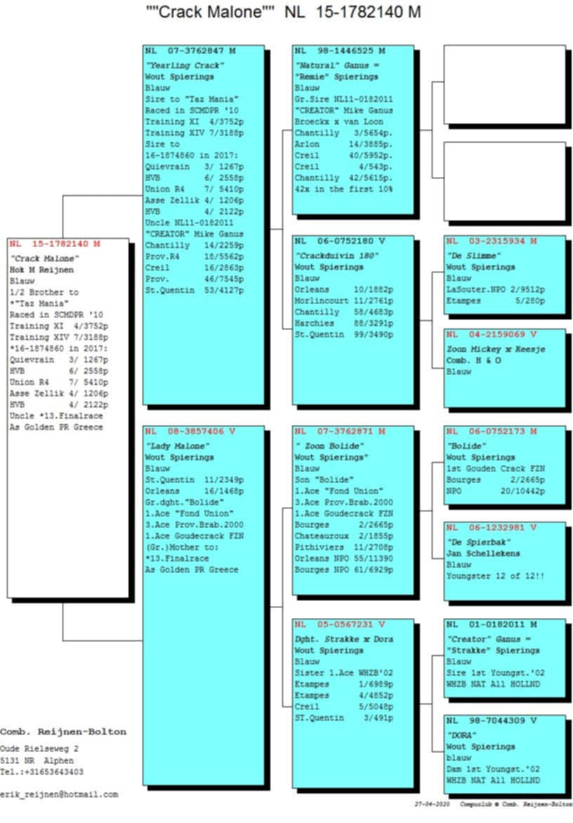 Offre un pigeonneau des reproducteurs Voir les Pédigrées des Parents ci dessous