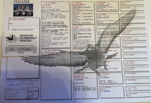 As pigeon Européen 3 prix 2021 – La COLOMBE JOYEUSE