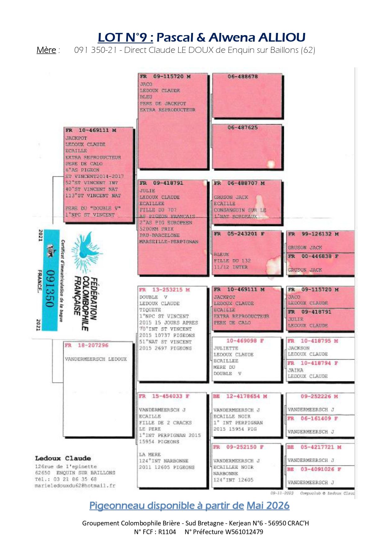 N° 9 : ALLIOU	Pascal et Alwena – 10e Auray