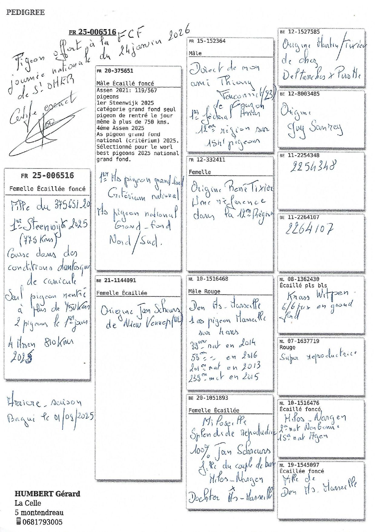 Troisième du championnat Nord Sud 2025 de la FCF, as pigeon grand fond du criterium FCF 2025 et as pigeon grand fond Nord Sud FCF 2025, Gérard Humbert s’est à nouveau distingué dans la discipline qu’il affectionne, le grand fond.