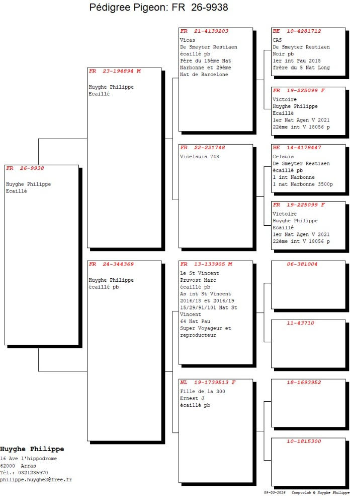 Philippe Huyghe est un colombophile réputé pour ses performances sur les concours internationaux . , il a décroché des victoires nationales prestigieuses (Agen, Narbonne) et des