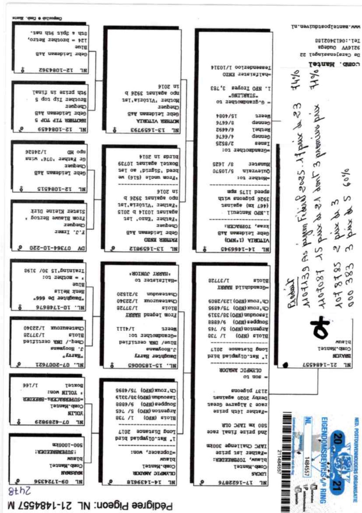 1107087 8 prix sur 9 dont AS pigeon fédéral yearling 2024