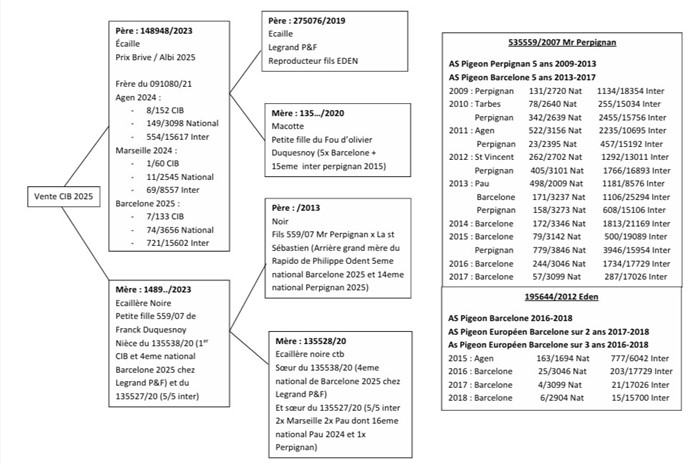 Offre un pigeonneau à cette vente il y a de forte chance d’y trouver le nom des Duquesnoy ou LEGRAND sur le pédigrée!
