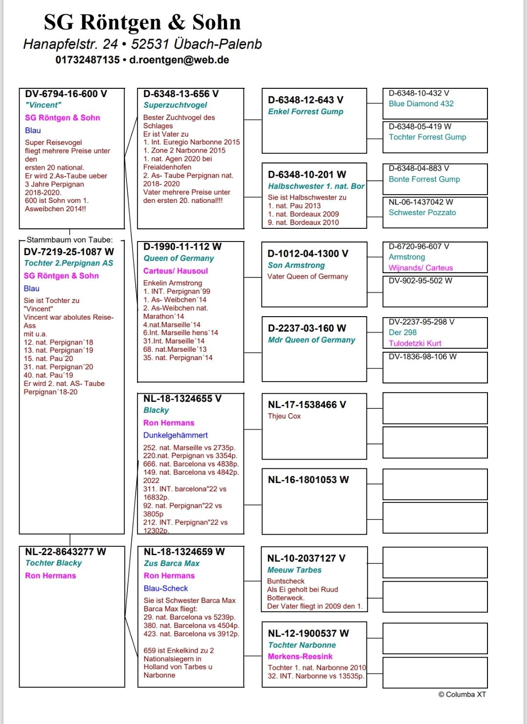 N° 8 : DV-7219-25-1087 – Femelle – Fille 2 AS Pigeons Perpignan 2018/2020 DV-7219-25-1087